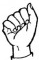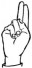 На ћирилици написано РАДНА РОБОВИЋ састоји се из 12 слова [?]. Исписано ћириличном једноручном азбуком за глувонеме: